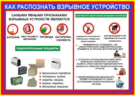 - немедленно сообщить преподавателю (директору, иному сотруднику администрации организации образования) об обнаружении подозрительного предмета;