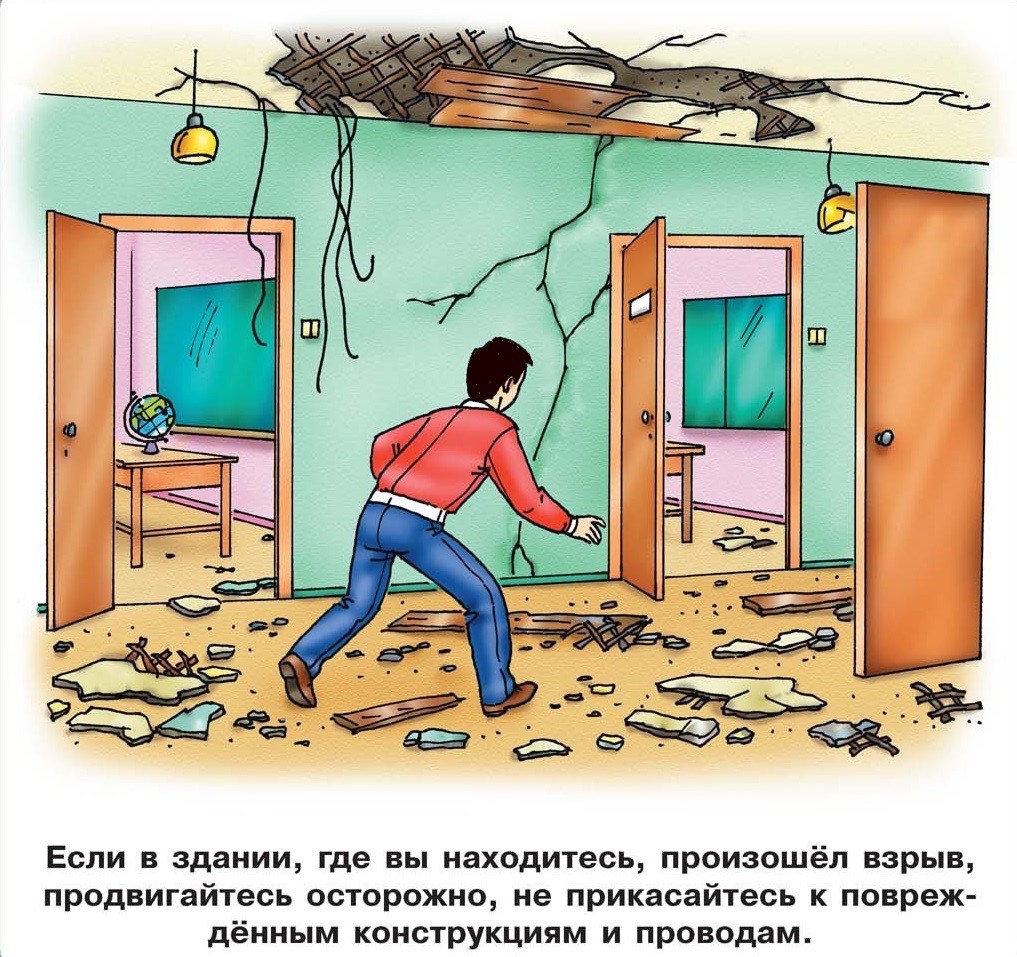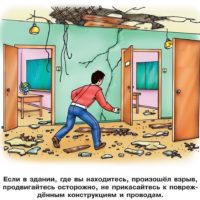 - лежите на полу лицом вниз подальше от окон и дверей, не на прямой линии от оконных и дверных проемов, голову закройте руками и не двигайтесь;