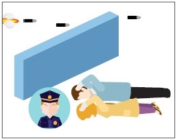 - в случае стрельбы сразу же ложитесь и осмотритесь, выберите ближайшее укрытие и проберитесь к нему, не поднимаясь в полный рост. Укрытием могут служить выступы зданий, памятники, бетонные столбы, бордюры, канавы и т.д;